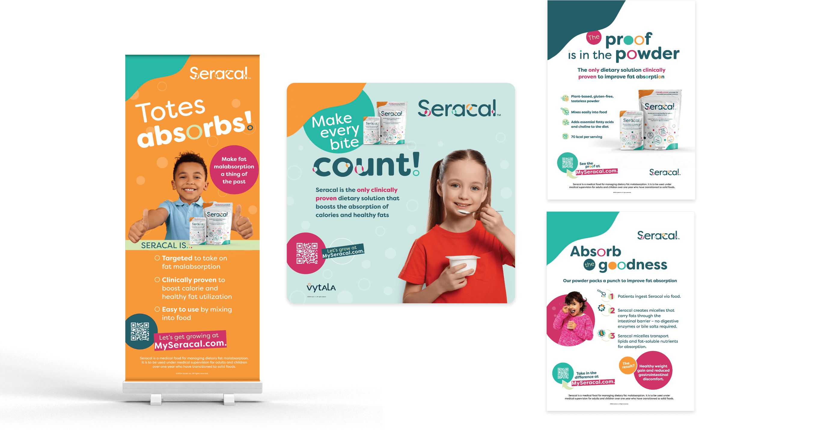We created a suite of trade show materials, featuring fun copy like “Totes Absorbs,” to reinforce Seracal’s unique role in tackling malabsorption. With an approachable, conversational tone, we ensured that every piece is as relatable and easy to understand as the product itself.